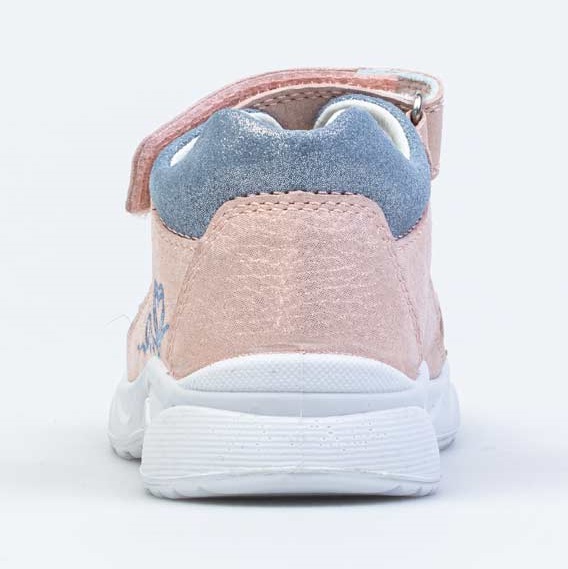 Туфли для девочки изготовлены из натуральной кожи. -Закрытая пятка надежно фиксирует стопу. -Стелька из натуральной кожи имеет небольшой подсводник. - Застежка- два ремня с \'велькро\' облегчает обувание и снимание обуви. - Мягкий манжет создает комфорт при ходьбе и предотвращает натирание ножки ребенка. -Подошва из полиуретана— легкая и гибкая. Модель декорирована принтом.