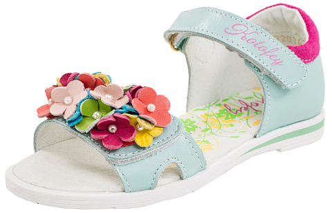 Чудесные сандалии для Вашей девочки выполнены из мягкой натуральной кожи и декорированы ярким цветочным украшением. Носочная часть дополнена липучкой, что делает эту модель универсальной для ног любой полноты. Подошва из термоэластопласта легкая и удобная. Мягкий манжет создает комфорт при ходьбе и предотвращает натирание ножки ребенка. Нежное цветовое сочетание модели универсально и подойдет практически к любому гардеробу.