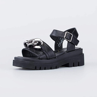 Сандалии для девочки с подкладкой из натуральной кожи Верх обуви выполнен из искусственной кожи. Подкладка и стелька из 100% натуральной кожи - износостойкого, гипоаллергенного и дышащего материала. Модель максимально открытая, подходит для жаркой погоды. Обувь на ноге фиксируется при помощи ремешка с пряжкой. Подошва изготовлена из ПУ (полиуретана) - гибкая, эластичная, амортизирующая и износостойкая. Модель выполнена в классическом черном цвете, поэтому ее легко сочетать с любой одеждой. Внимание привлекает массивная рельефная подошва и декоративный элемент в носочной части. Модель анатомически правильная: имеет небольшой каблучок, подсводник (супинатор). Это положительно влияет на правильное развитие стоп и всего опорно-двигательного аппарата.