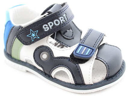 Сандалии для мальчика Буратино B6016 (синий+белый/экокожа)