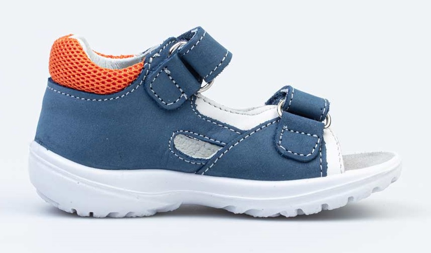 Туфли для мальчика изготовлены из натуральной кожи. -Закрытая пятка надежно фиксирует стопу. -Стелька из натуральной кожи имеет небольшой подсводник. - Застежка- два ремня с \'велькро\' позволяют легко обувать и снимать обувь, а также регулировать посадку сандалий на ступне. - Мягкий манжет создает комфорт при ходьбе и предотвращает натирание ножки ребенка. -Подошва из полиуретана— легкая и гибкая. Модель декорирована принтом.