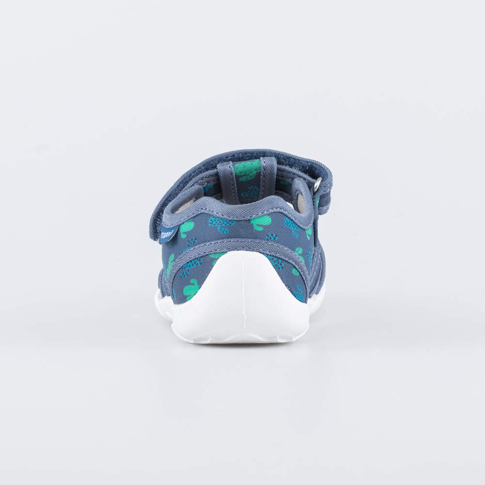 Хлопковые сандалии для мальчикасинего цвета Верх, подкладка и стелька выполнены из натурального хлопка, что позволяет ножкам дышать. Модель полуоткрытая - это создает дополнительную вентиляцию. Липучки-велькро позволяют быстро обуваться и разуваться. Подошва выполнена из ПВХ (поливинилхлорида) - гибкая, амортизирующая и износостойкая. Модель анатомически правильная: имеет небольшую приподнятость пяточной части по отношению к носочной, подсводник (супинатор) и круглый носок. Такая научно-обоснованная конструкция положительно влияет на правильное развитие стоп и всего опорно-двигательного аппарата. Сделано в России.