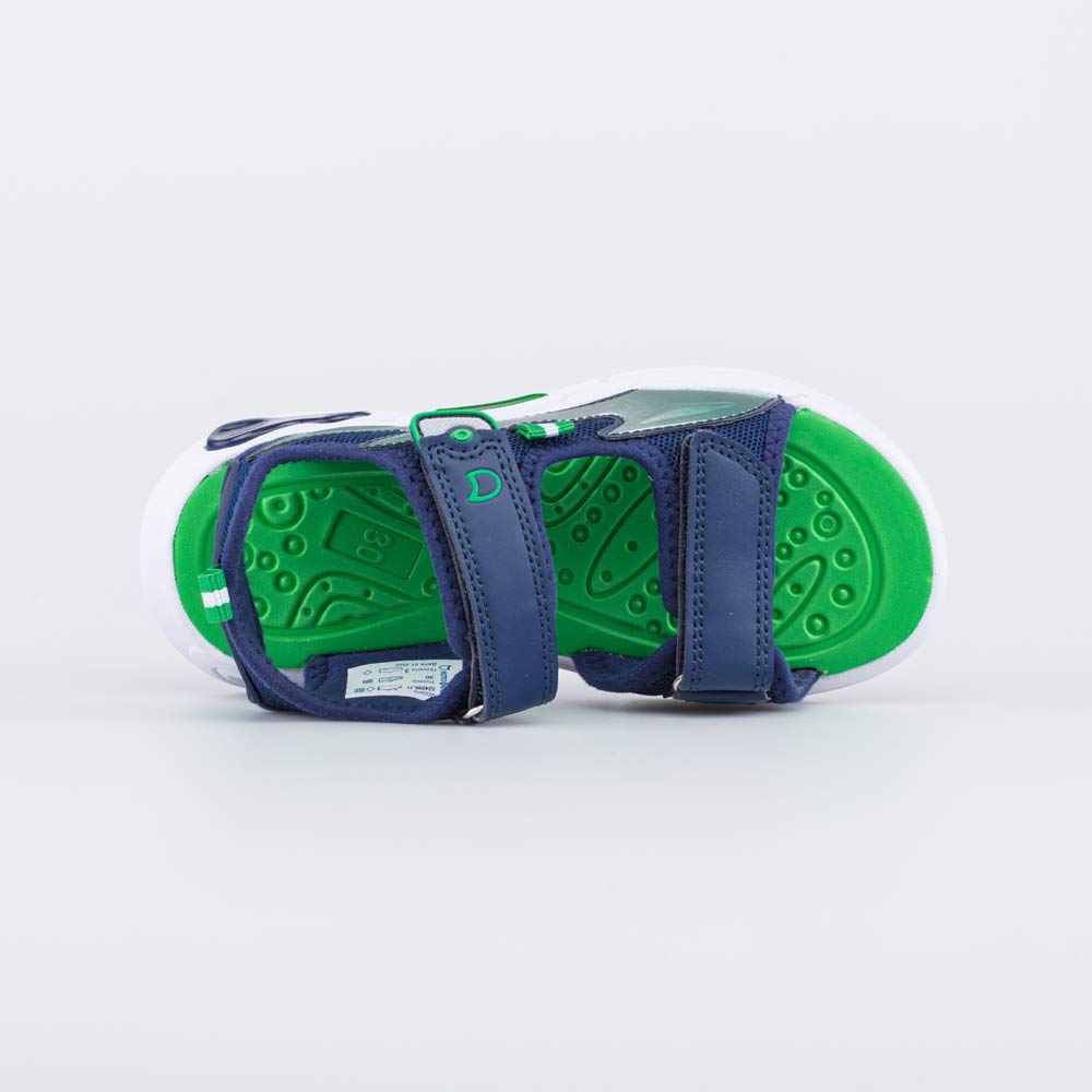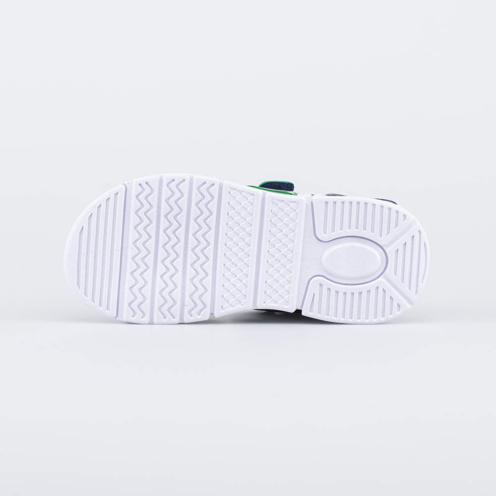 Яркие и лёгкие пляжные сандалии для мальчика Верх обуви выполнен из комбинации текстиля и искусственной кожи. Подкладка текстильная, чтобы ножкам было комфортно. Липучки-велькро позволяют отрегулировать обувь по подъему, а также быстро обуваться и разуваться. Модель максимально открытая - подойдет для жаркой погоды и быстро высохнет при намокании. Подошва изготовлена из ЭВА (этиленвинилацетата) - очень лёгкая, эластичная и амортизирующая. Модель интересна своим современным дизайном. Массивная рельефная подошва оснащена светодиодами, мигающими при ходьбе. Модель анатомически правильная: имеет приподнятость задней части по отношению к носочной, стелька повторяет форму стопы и имеет небольшой рельеф, что создает массажный эффект. Это положительно влияет на правильное развитие стоп и всего опорно-двигательного аппарата.