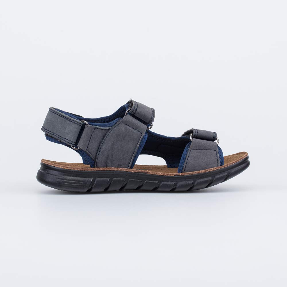 Сандалии для мальчика из натурального нубука Верх обуви и стелька выполнены из 100% натуральной кожи - износостойкого, гипоаллергенного и дышащего материала. Подкладка из нейлона. Липучки-велькро позволяют отрегулировать обувь по подъему, а также быстро обуваться и разуваться. Модель максимально открытая, подойдет для жаркой погоды. Подошва изготовлена из ПУ (полиуретана) - гибкая, эластичная, амортизирующая и износостойкая. Модель анатомически правильная: имеет приподнятость задней части по отношению к носочной, стелька повторяет форму стопы. Это положительно влияет на правильное развитие стоп и всего опорно-двигательного аппарата.