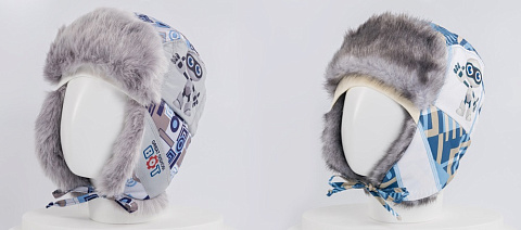 Шапка зимняя детская для мальчика. Состав: верх: \'плащевка\' - 100% п/э, подклад: \'футер\' - 100% х/б; утеплитель: холлофайбер; отделка: иск. мех. Размер: 50 (3 - 4 года)