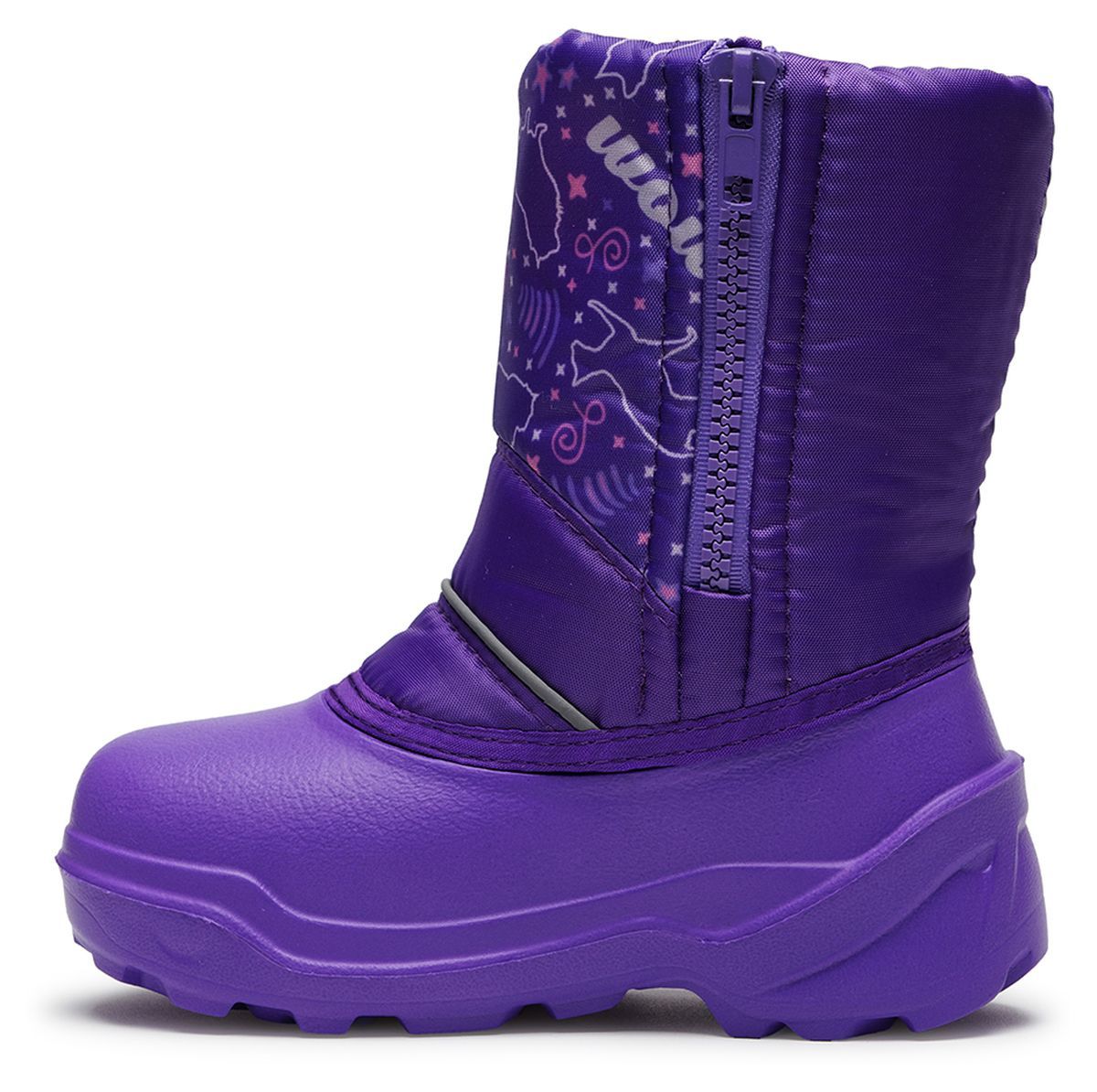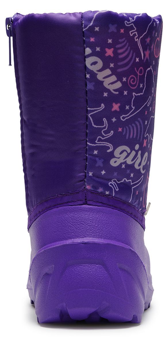 Детские зимние сноубутсы из морозостойкого эластичного полимера сохранят тепло и защитят от холода. Утеплены вшитым нетканым ворсовым полотном, дублированного поролоном. Застежка молния с защитным внутренним клапаном для комфортного обувания. Верх из принтованной ткани с водоотталкивающей пропиткой дублирован поролоном и обеспечивает легкость в уходе, а также дополнен светоотражающим кантом.