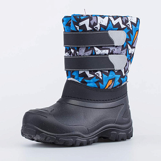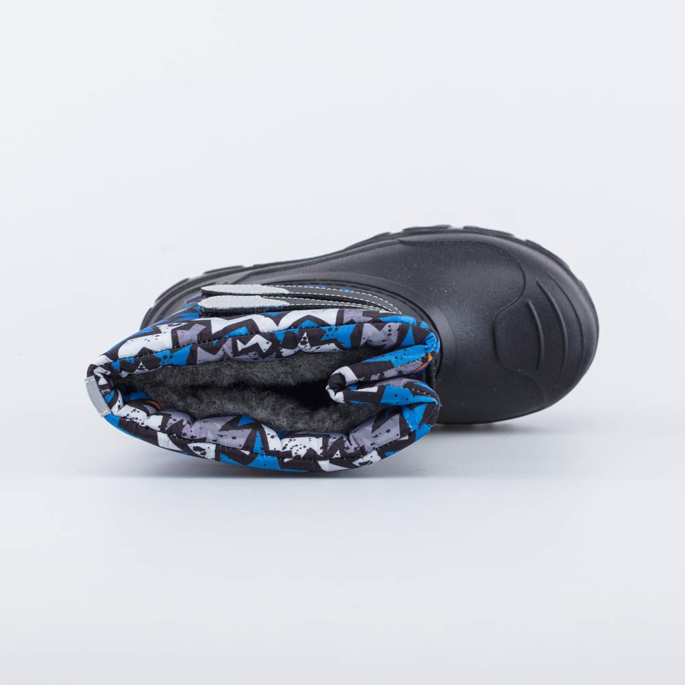 Теплые непромокаемые сапожки Snow&Rain для мальчика черно-синего цвета Материал верха - текстиль на основе гипоаллергенного полиэстера, защищающий от ветра, грязи и брызг. Подкладка и стелька на 80% состоят из натуральной шерсти, поэтому ножкам будет тепло, комфортно и безопасно. Галоша выполнена из ЭВА (этиленвинилацетата) - амортизирующего и легкого материала, который обеспечивает защиту от влаги. Липучки-велькро позволяют быстро обуваться и разуваться. Во избежание намокания обуви не рекомендуется наступать в лужу выше уровня галоши! Модель анатомически правильная: во внутреннем пространстве есть небольшая приподнятость пятки по отношению к носку, которая не заметна внешне, и круглый носок. Такая конструкция положительно влияет на правильное развитие стоп и всего опорно-двигательного аппарата. Сделано в России.