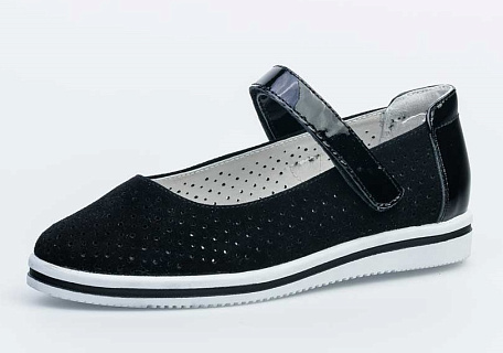 Стильные туфли-лодочки для девочки красивого синего цвета с верхом и подкладкой из натуральной кожи и натурального велюра. - Модель со сквозной перфорацией, что создает дополнительную вентиляцию кожи стоп. - Мягкий манжет создает комфорт при ходьбе и предотвращает натирание ножки ребенка. - Ремешок с липучкой (велькро) удобно фиксирует обувь на стопе. - Туфли подходят как для торжественных мероприятий, так и для повседневной носки. Данная модель анатомически правильная: имеет небольшой каблучок, подсводник и жёсткий задник - что положительно влияет на правильное развитие стоп ребенка.
