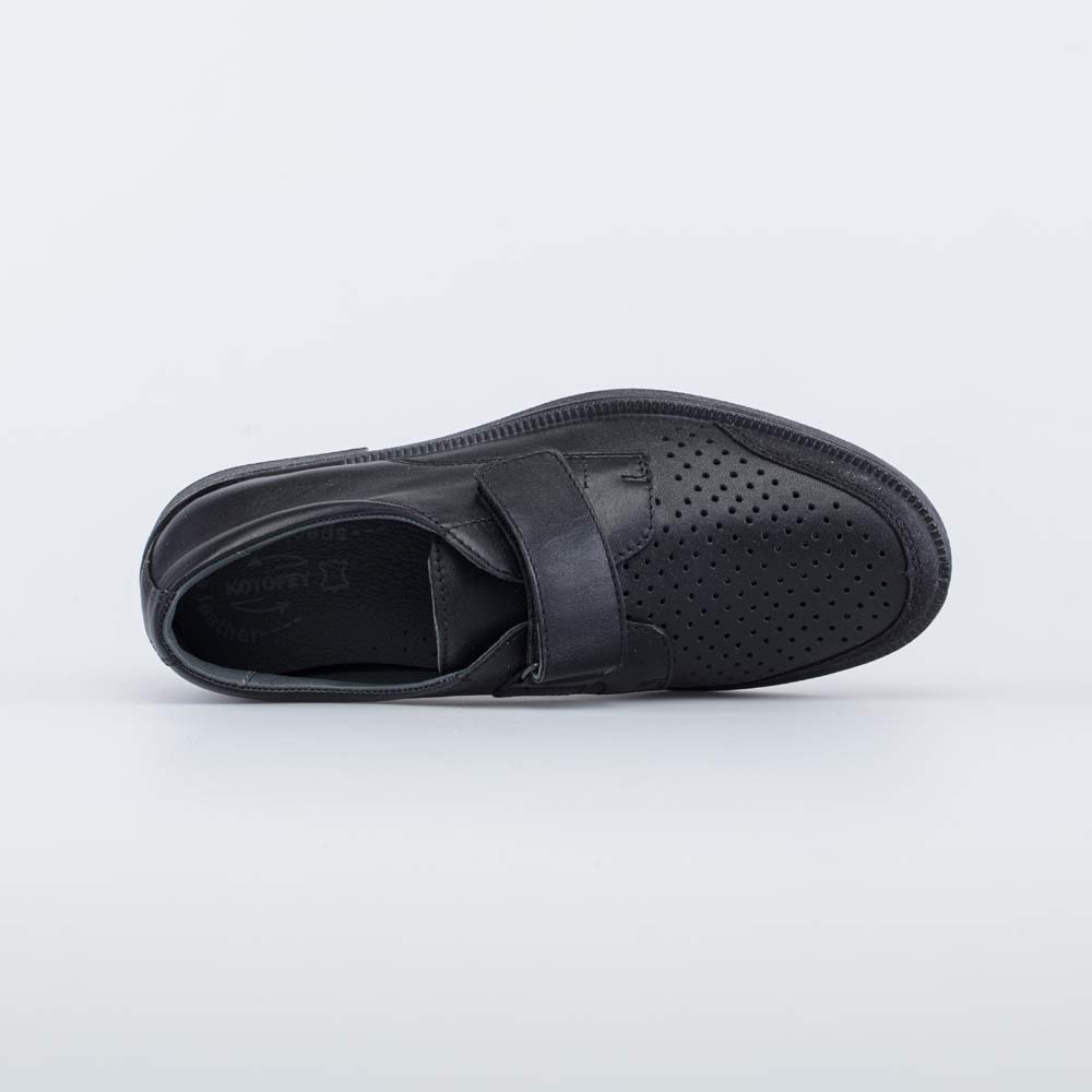 Кожаные туфли для мальчика черного цвета Верх, подкладка и стелька выполнены из натуральной кожи - износостойкого, гипоаллергенного и дышащего материала. Дополнительную вентиляцию обеспечивает перфорация. На носочной части - защитные накладки, которые продлевают срок службы обуви. Мягкий манжет снижает вероятность натирания. Липучки-велькро позволяют быстро обуваться и разуваться. Подошва из ПУ (полиуретана) - гибкая и амортизирующая. Благодаря лаконичному дизайну, модель отлично подходит для повседневной носки в школу. Модель анатомически правильная: имеет небольшой каблучок/танкетку, подсводник (супинатор), в меру жёсткий задник и круглый носок. Такая научно-обоснованная конструкция положительно влияет на правильное развитие стоп и всего опорно-двигательного аппарата. Сделано в России.