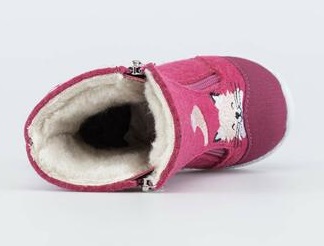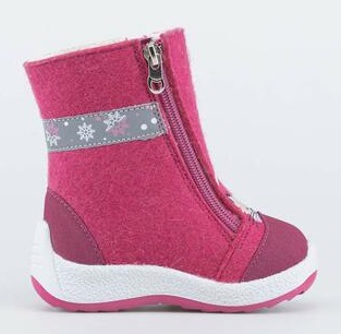 Валенки для девочки выполнены из войлока. -Материал верха войлок - плотный, дышащий и при этом создаёт блогоприятный климат вокруг стопы на улице и в помещении. -Материал подкладки - шерстяной мех из натуральной овечьей шерсти отлично сохраняет тепло, отводит влагу от ноги, придает дополнительный комфорт. -Фиксация на ножке достигается благодаря двум молниям, отлично раскрывающих модель во время процесса обувания. -Носочная и пяточная части защищены кожаными накладками с полиуретановым покрытием, придающим дополнительную износостойкость и защиту от химических реагентов. -Для безопасности прогулок в темное время суток валенки оснащены световозвращающими элементами. - Подошва модели – легкая и амортизирующая, имеет противоскользящую накладку.