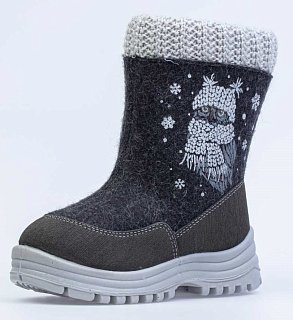 Материал верха войлок. Носочная и пяточная части защищены кожаными накладками с полиуретановым покрытием, придающим дополнительную износостойкость и защиту от химических реагентов. Литьевая подошва из полиуретана имеет анатомическую форму следа и в точности повторяет изгибы свода стопы, что позволяет ноге чувствовать себя комфортно весь день. Резиновая накладка из ТПУ на ходовой поверхности предотвращает скольжение. Материал подкладки - шерстяной мех из натуральной овечьей шерсти отлично сохраняет тепло, отводит влагу от ноги, придает дополнительный комфорт. Фиксация на ножке достигается благодаря молнии отлично раскрывающей модель во время процесса обувания. Мягкий трикотажный манжет создает комфорт при ходьбе. Модель декорирована принтом.