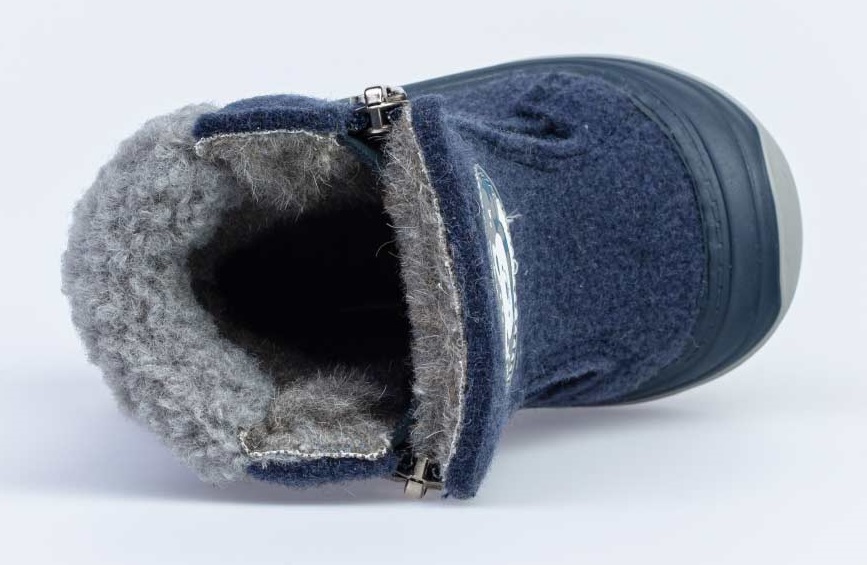 Сапожки войлочные (валенки) выполнены в сочетании материалов: войлок и мех из натуральной овечьей шерсти на трикотажной основе. Отлично сохраняет тепло, отводит влагу от ноги, придает дополнительный комфорт. Подошва из ТЭП галошевидной формы, с усиленной защитой носочной и пяточной части. Благодаря наличию двух молний, позволяющих быстро и легко обувать на малыша, модель является неизменным лидером продаж нескольких сезонов. Модель декорирована опушкой и нашивкой.