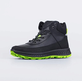 Верх выполнен из натуральной гладкой кожи, вдоль подошвы усилен антивандальной накладкой с ПУ-напылением. Текстильные язычок и манжет обеспечивают отведение влаги во время активного движения или если нужно с улицы зайти в теплое помещение.